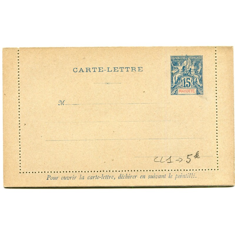 Mayotte Type Groupe 15c : entier postal carte lettre CL1 neuf
