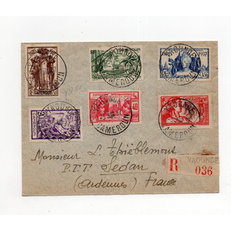 Série expo 1937 sur lettre recommandée de Yaoundé du 3/6/1937