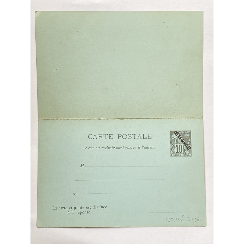 Diego Suarez, entier postal neuf avec réponse CP3B, 10c type Alphée Dubois.