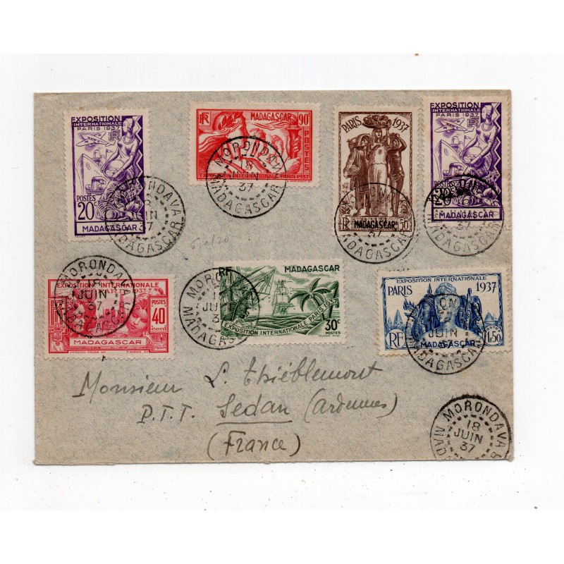 Série expo 1937 sur lettre recommandée de Morondava du 17/6/1937