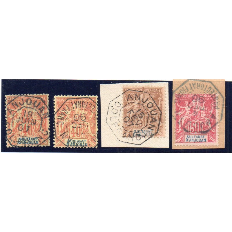 Sélection d'oblitérations d'Anjouan, colonie française et protectorat français