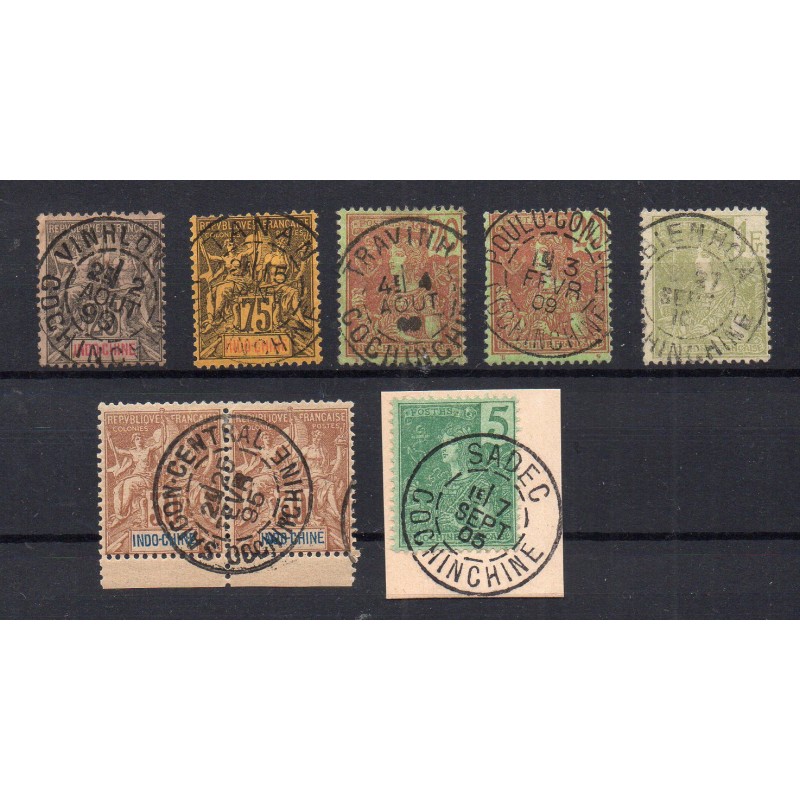 Belle sélection d'oblitérations de Cochinchine sur timbres d'Indochine