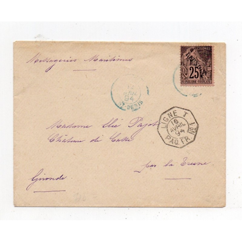 Lettre de St Denis de 1894 pour la France, cachet maritime ligne T paq. fr. n°1