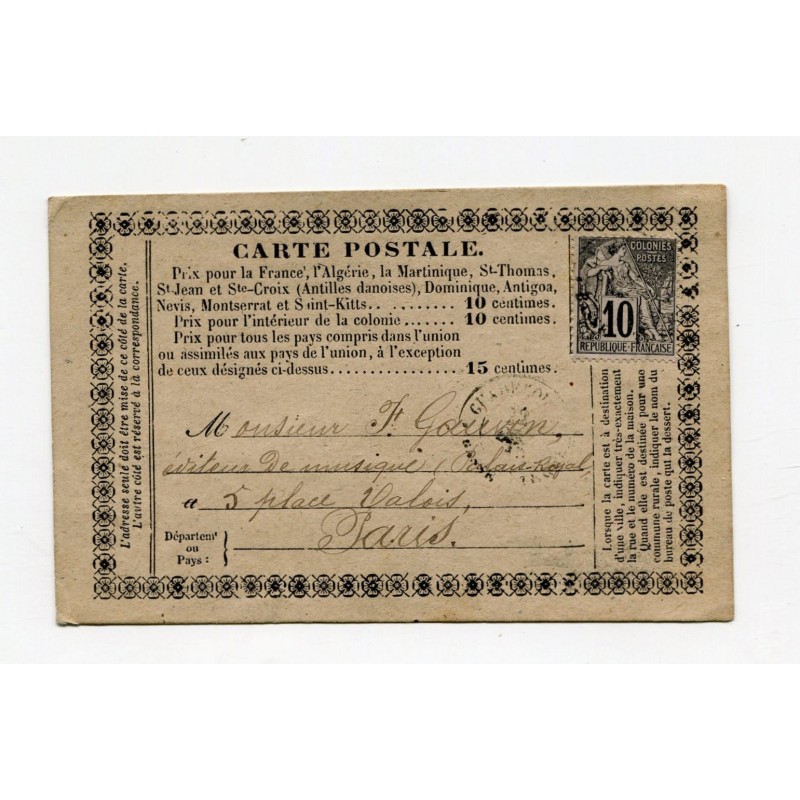 Carte précurseur de Basse Terre de 1883 pour Paris, affranch Alphée Dubois