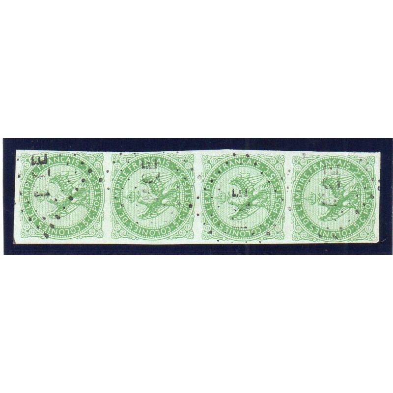 Bande de 4 du 5c aigle oblitéré losange MQE (Martinique)
