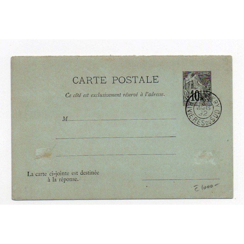 Guinée, entier postal carte lettre 15c Alphée Dubois, cachet philatélique Conakry Rivières du Sud 1892