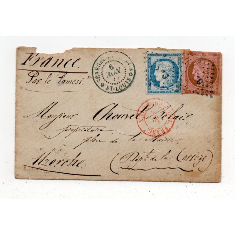 Lettre de St Louis pour Uzerche de 1877, affranch Cérès des colonies générales