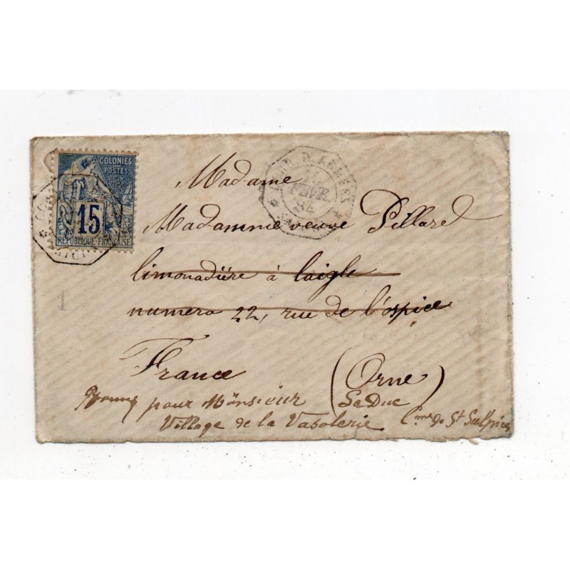 Cachet corresp d'armées Saigon sur lettre de 1884 pour la France affranch tp des colo générales