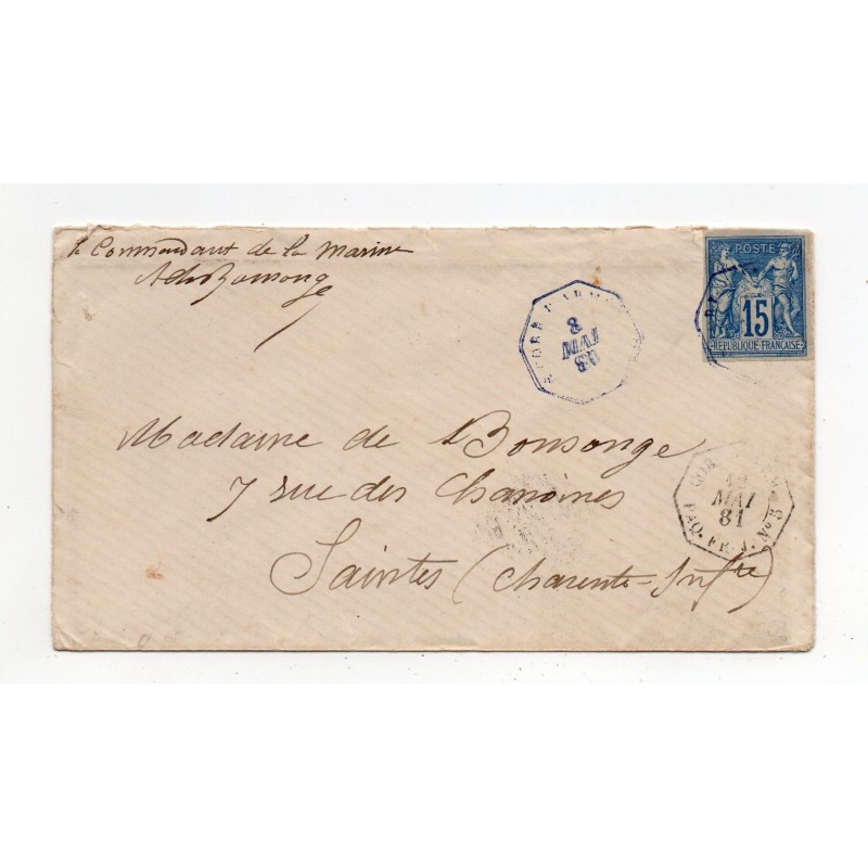 15c Sage des colonies générales sur lettre de Fort de France, Martinique de 1881 pour Saintes